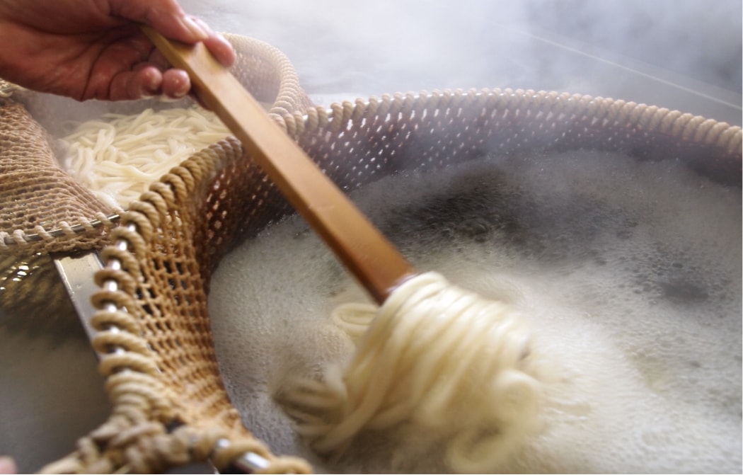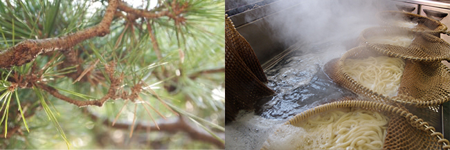 太い麺のこだわり。作るごとに違いが出る。麺は生きもの。水と塩と粉。その日の温度で大きく違う熟成。毎日塩梅が違います。
