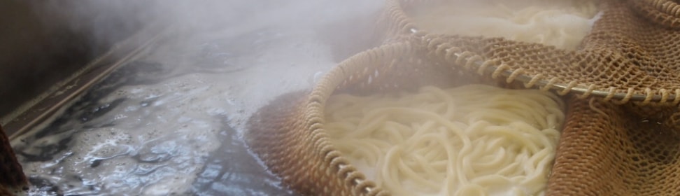 大牟田の前店舗のうどん職人からこの荒尾東屋形に移り、10年を越えました。水質、気温、粉の状態は日々違います。又、醤油、塩、みりんなど開業当時から出来るだけ同じものを使い続けています。当店は有明海にも近く「いりこ」がだしの基本ですが、かつおや昆布に比べ、いりこのだしは舌に優しくあたるので、味の変化が受取にくく、日々精進しております。現在は島原産など3種のいりこを使用しています。